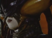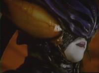 Close-ups of Hydrasect's face as her red drapes whip about. |