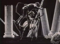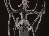 Now a regular spider, Arachnida falls dead on a fully black ground, only to gleam, and erupt into a shimmery glittery explosion. |