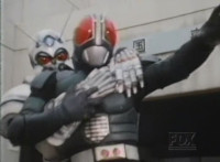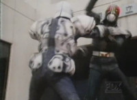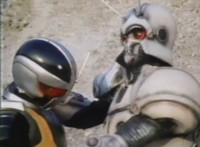 Heliotoid breaks free from Masked Rider, throwing a few punches at him until he flails away. |