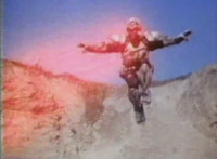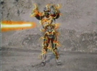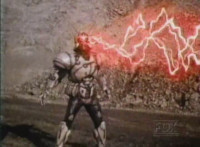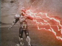 Zoom in on Heliotoid as he prepares to leap while being laserblasted and crackling. |