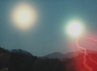 Fades in shot 1; cuts follow-up shot of the two suns. |