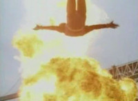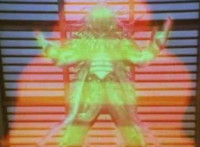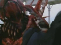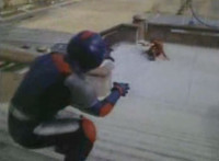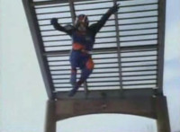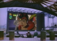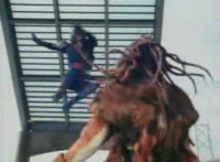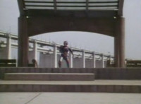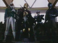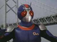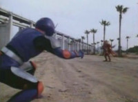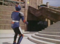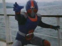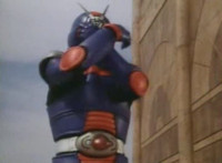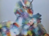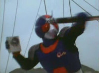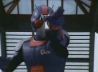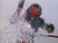 Cuts follow-ups of Super Blue diving past Water Bug, then reverting to normal Masked Rider, then leaping back up. |