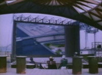 Nefaria talks on a giant screen, as Cyclopter, Gork, Count Dregon, and Doubleface watch, the picture then changing over to a pan across a model bridge. |