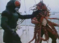 Normal Masked Rider does his Rider Kick into Water Bug. |