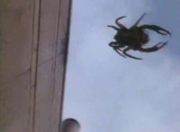 Close, slightly upward angle, as Spiderbase flies over us through space, mouth open. |