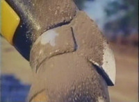 As the quarry scene changes awkwardly, a blue glowing Super Blue rises to a standing position. |