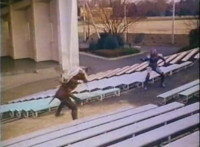 Cheap CGI twister, and explosion, added into first shot's early portion; shot 4 is trimmed to shut Nefaria up; yes, that's Robo Rider big as life in shot 16. |