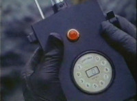 Doubleface flips a switch on a handheld device, then talks as Cyclopter & Nefaria gawk. |