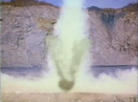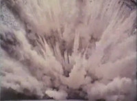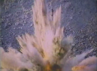 Dirt burst in a quarry with a little bit of explosioning within. |