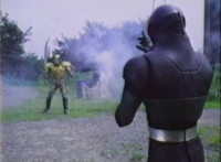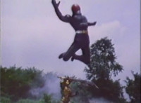 Transitions out; cuts before Masked Rider recovers and flees. |