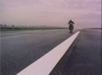 Down a long empty stretch of road, Masked Rider speeds along on Combat Chopper. |