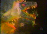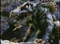 Count Dregon watches the Spiderbase viewscreen, an image of Gork watching as Dread Dragon appears in a cavern and crows about with both his head main head, and his hand-heads. |