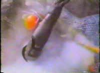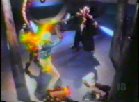 Cuts shot 1 short to try to lessen the visibility of the Stoogeish manuever; cuts second shot before MR gets up and pounds on Cyborgator, then splits off the end. |