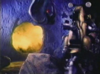 Zoom out from Doubleface as he and Cyclopter talk. |