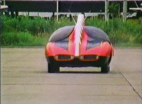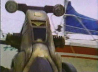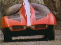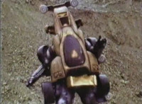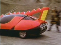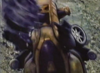 Magno drives by Masked Rider, who teleports into her in a flash. Revenator reacts. Magno speeds right at Revenator, but passes by inches away from the monster, who he fires his headlight beams at her, bursting Magno from the back, but not stopping her. |