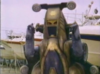 A small gold remote controlled car crackles with golden energy, and becomes Revenator. |