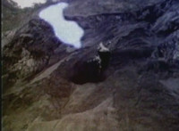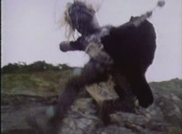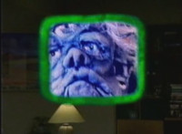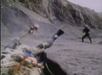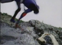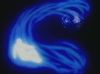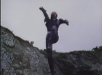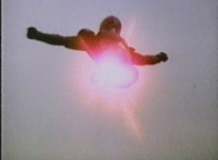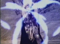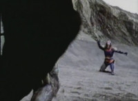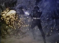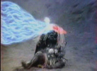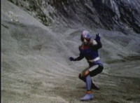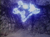 Ocusect seems upset, when suddenly her third eye glows, then from out of it springs Super Blue in liquid energy mode, swirling around her until she falls over the side of a cliff and rolls down the hillside. Super Blue then rematerializes in the quarry below. Ocusect recovers, as Super Blue poses before her. Ocusect reacts, as Super Blue poses some more. |