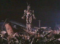 A floating mass in a flashing junkyard morphs into Destructasphere. |