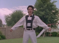 In the center: Hal & Barbara smile like the happy couple we assume they are; in the fringes: Masked Rider continues to flip over the explosions. |