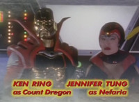 In the center: Count Dregon & Nefaria stand side by side looking at our slight left; in the fringes: Masked Rider lands and poses. |