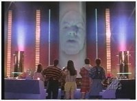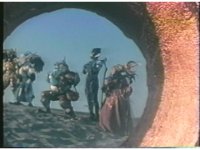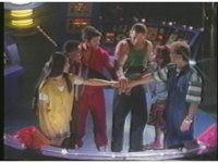 Scene clip: The five teenagers with attitude, in the quaking Youth Center, suddenly teleport out across the desert and end up in the Command Center. |
