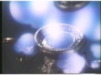 Close on the top of the golden urn. as the gems amid its pentagram glimmer and sparkle, before the lid lifts off with a golden light, while the bluish energy smoke rises out of inside the urn. |
