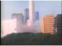 Skyscraper suddenly rockets skyward, as several office buildings crowd around the point of launch and a helicopter flitters about. |