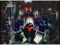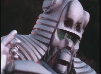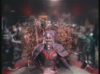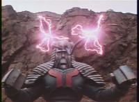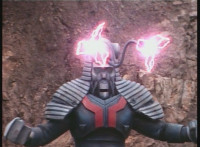 Karl Ziktor morphs into Grimlord and materializes onto his throne. |