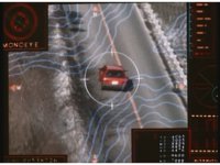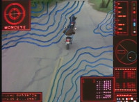 POV of monoeye scanning and locking onto Kaitlin's car driving below. |