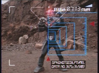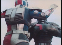 VR Ryan readies fist then rushes forth, Metalbot punching at the same time, both fists colliding with electric results, causing the ground to crack open somewhere. VR Ryan throws another punch, Metalbot ducks, deflects the next blow, and returns the punches successfully, his third hit on VR Ryan sending him falling down. VR Ryan recovers woozily to his knees and sees more than double with his blurry vision. Metalbot soon rushes forth and, in dramatic slow motion, punches him explosively, VR Ryan staggers back, then when Metalbot punches again, he grabs his arm and flips him over onto his back. Metalbot punches upward, and suddenly VR Ryan's head gets blurry and distorted. |
