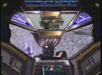 VR Ryan's POV as Metalbot points his fist forth and VR JB appears in the smaller display. |
