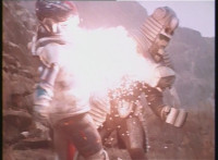 Zoom in on VR Ryan, as he charges up his right arm into a Laser Fist, then punches forth, hitting Metalbot so hard he flies back into the cliff wall, a small rockslide falling atop him. VR Ryan watches as Metalbot reaches out, then collapses. |