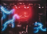 The virtual mutants watch from behind the energy screen as Metalbot slams his fists together. |