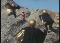 Cuts follow-up shot of Metaborg poking head up due to onscreen text. |