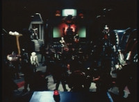 Pan across his laboratory as Colonel Icebot stands looking into a machine. |