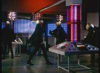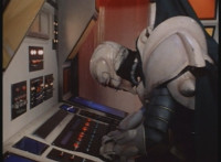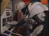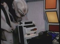 Zoom out as four Skugs work in a laboratory... hey, what's Doctor Who's Tardis console doing there?! |