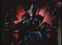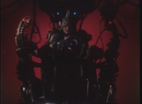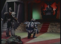 Karl Ziktor morphs into Grimlord and materializes onto his throne. |