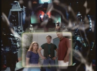 Grimlord's energy summons an energy screen above the mutants in the Dungeon, forming an image of the Trooper teen trio. |