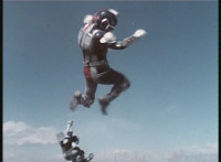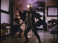 Plays in reverse of source; cuts before he teleports in... er, out. |