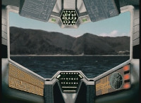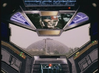 A computer scan picks up a life form, which is apparently near the water, scans identifying him as Cannonbot. |