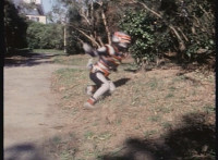 Plays in reverse at start, then plays forward; cuts follow-ups of VR Ryan running over and kicking Cannonbot's head off. |