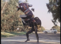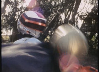 Cuts surrounding shots of VR JB due to him being on his Fighterbike. |