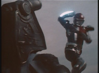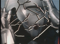 First frame is a single frame artifact of the mechanical skeleton from before; cuts final shot before VR Ryan can break off Cannonbot's shoulder armor, then cuts follow-ups of him breaking both of Cannonbot's arms and finally twisting his head around. |
