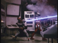 Shot 15 cuts before shot freezes and text appears onscreen; cuts follow-ups of gyros shutting down and VR Ryan collapsing, Cannonbot waking up, regaining his head, then passing out again. |