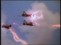 A single Air Fighter spins as it dives and fires bolts downward. |