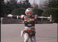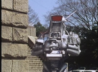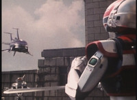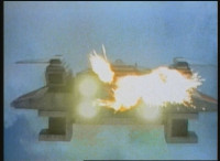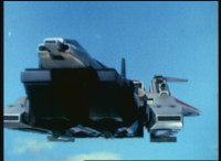 Cuts follow-ups of Skybase transforming into Techno Bazooka. |