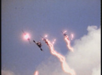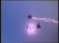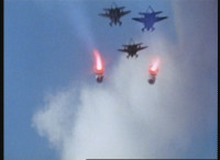 A couple of missiles gets close to a trio of Air Fighters, exploding them massively in midair. |