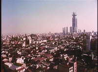 Distant shot of Ziktor Tower, towering over Cross World City. |