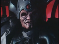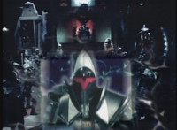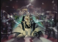 Karl Ziktor morphs into Grimlord and materializes onto his throne. |