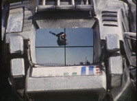 Spruced up from lifeless source; used ahead of source, inexplicably replaces a shot of Eliminator firing foils. |